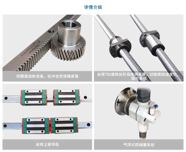 ◆三軸運(yùn)動(dòng)采用進(jìn)口高精度導(dǎo)軌、斜齒齒條,伺服電機(jī)及減速機(jī),使X軸鋁型材自行設(shè)計(jì)開(kāi)發(fā)模具,保證設(shè)備運(yùn)行過(guò)程中的穩(wěn)定性。